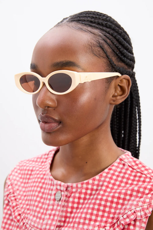 Damson Madder Catty Oval Sunglasses with Bow Detail - Bone