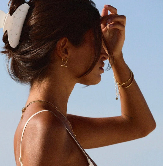 By Rae - The Piha T-Bar Hoops Midi, Gold