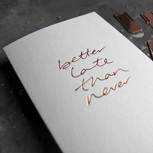 Text from a Friend, Hand Foiled Card - Better Late Than Never