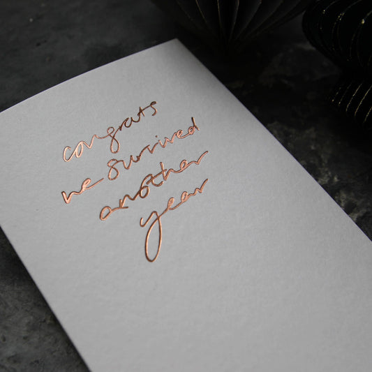 Text from a Friend, Hand Foiled Card - Congrats We Survived Another Year