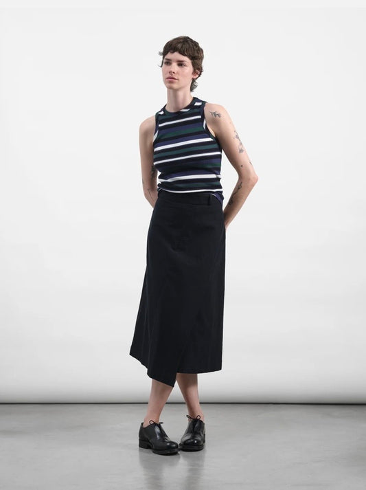 YMC - Draped Skirt, Black/Blue