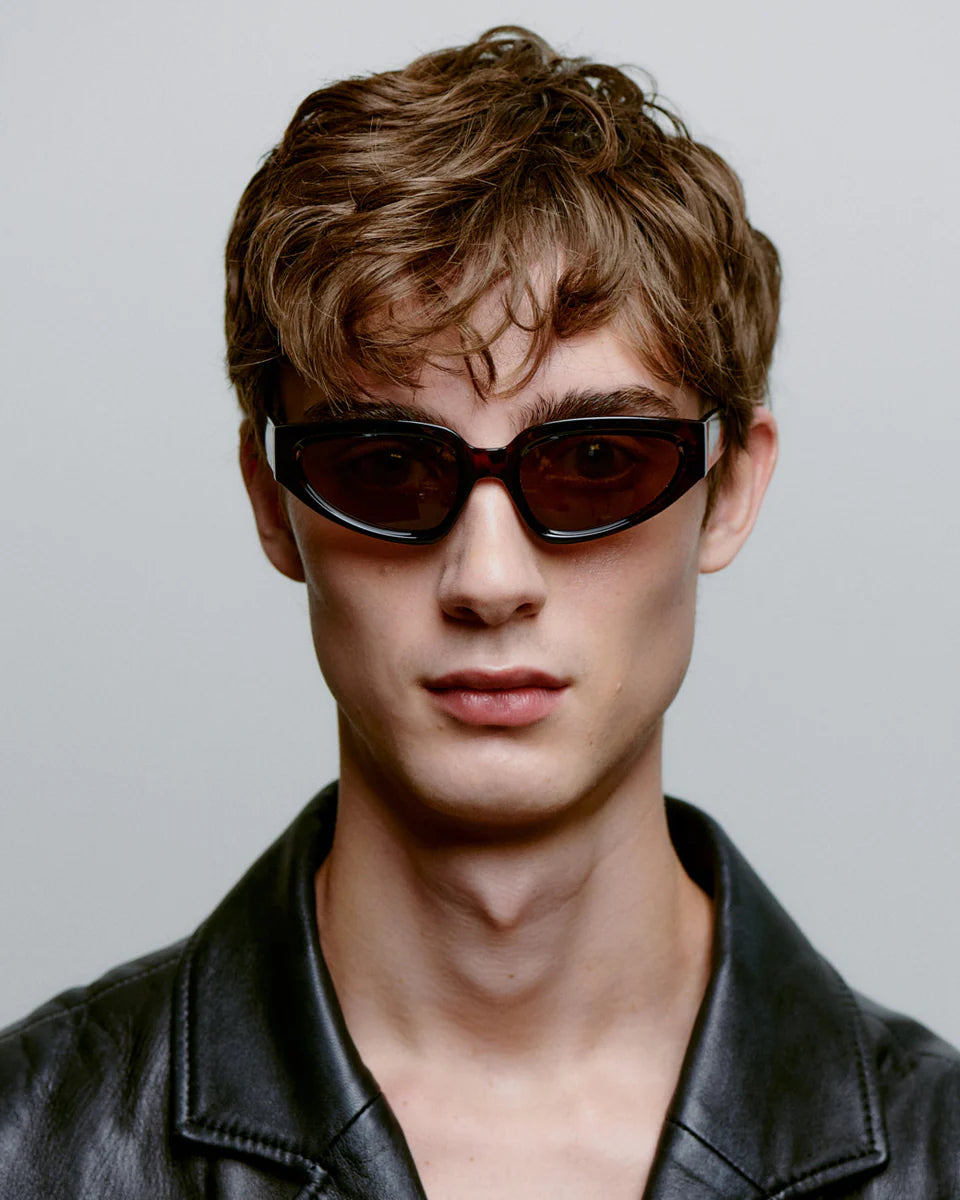 A slightly larger, classic yet trendy pair with narrow oval cateye lenses in an upright, robust frame with wide temples that together create a strong yet feminine look.