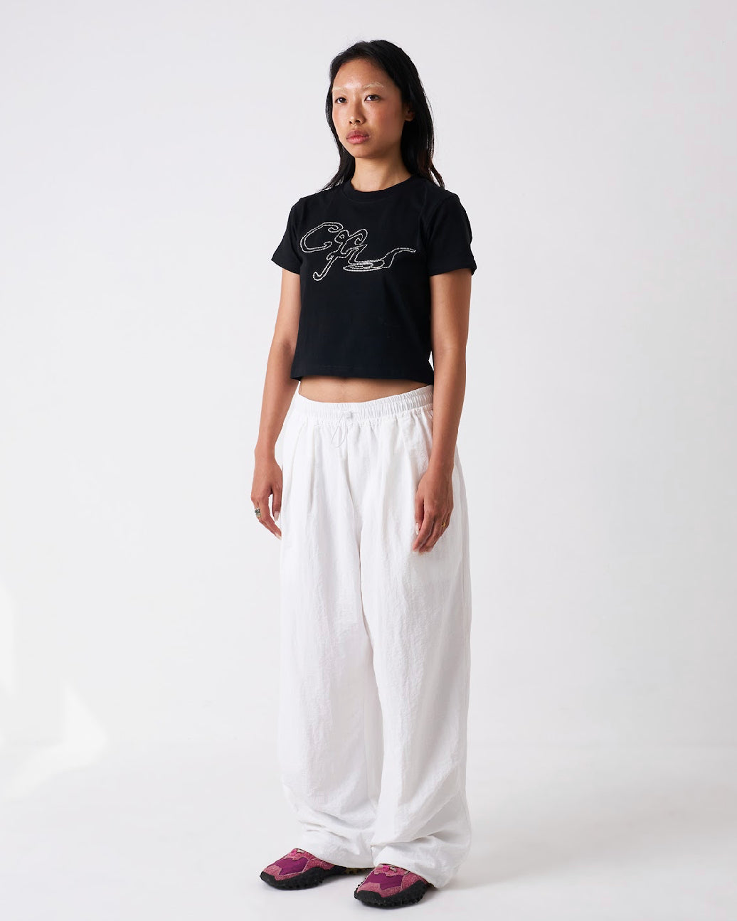 Our Air Nylon Pant in bone, made from a lightweight nylon fabric