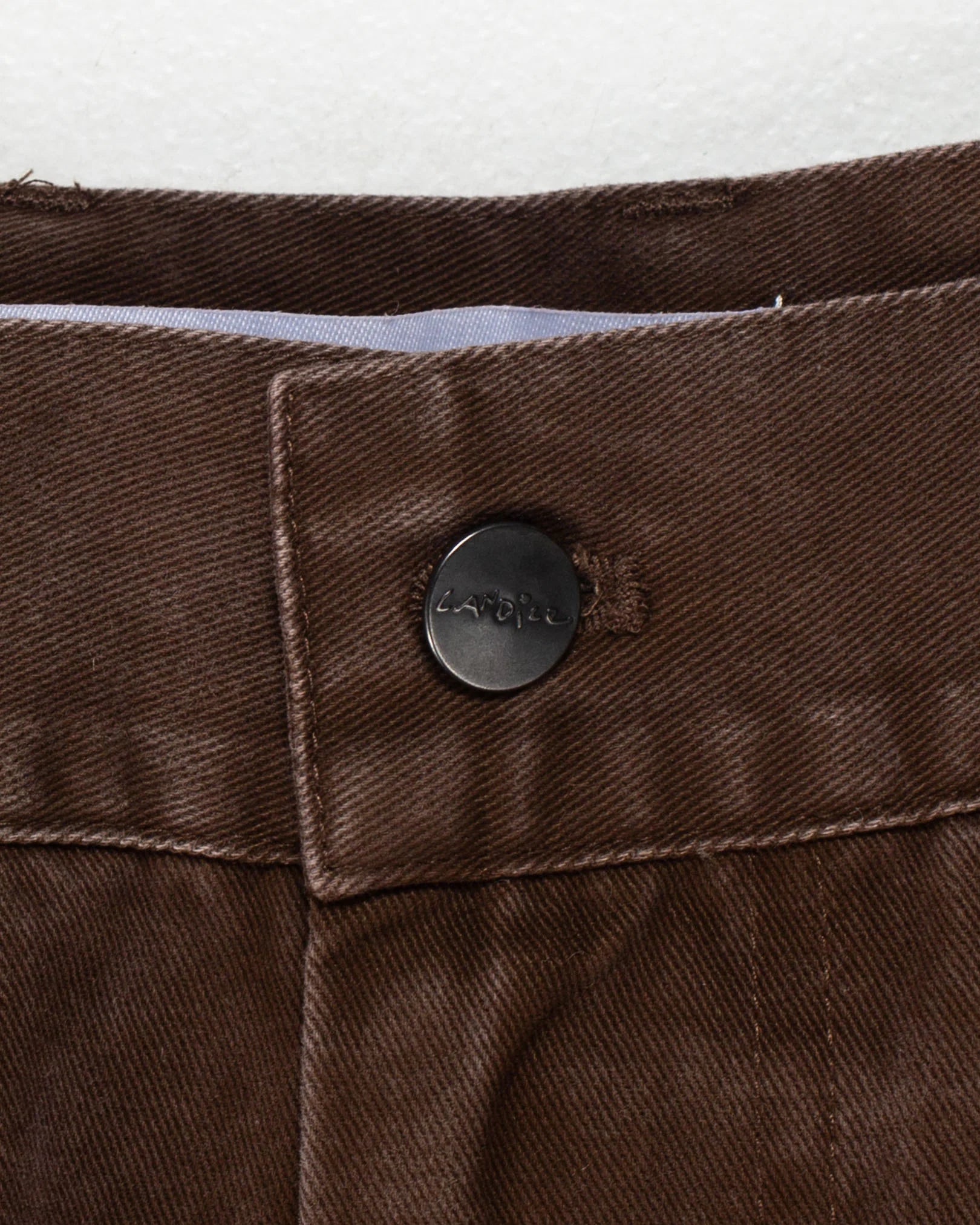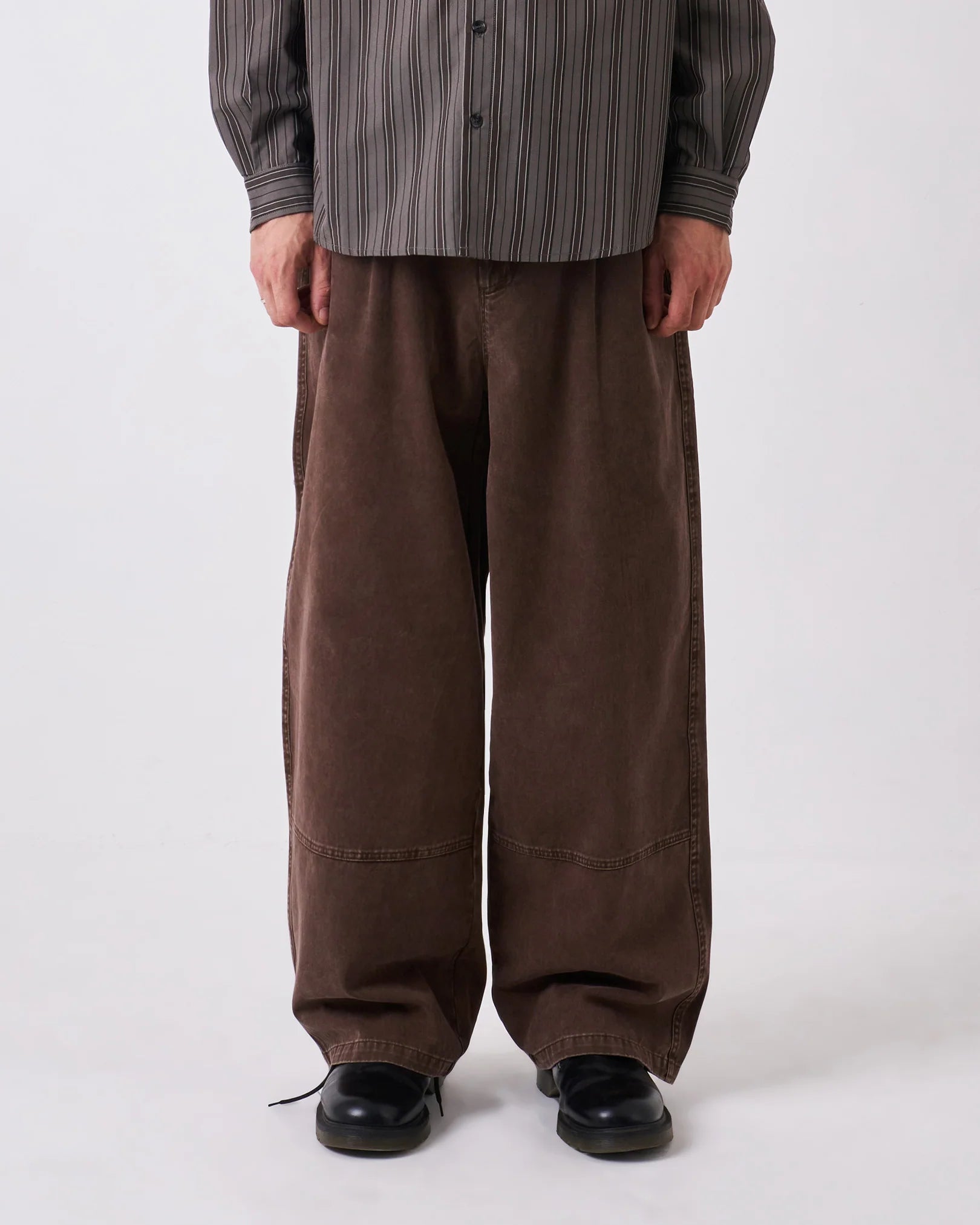 Our Washed Pleated Pants made from a midweight cotton twill fabric, garment washed for vintage effect. Features two front pleats, four pockets and lower shin panelling. Finished with grey embossed leather patch on back waistband. Part of a set with matching jacket and drop bag.