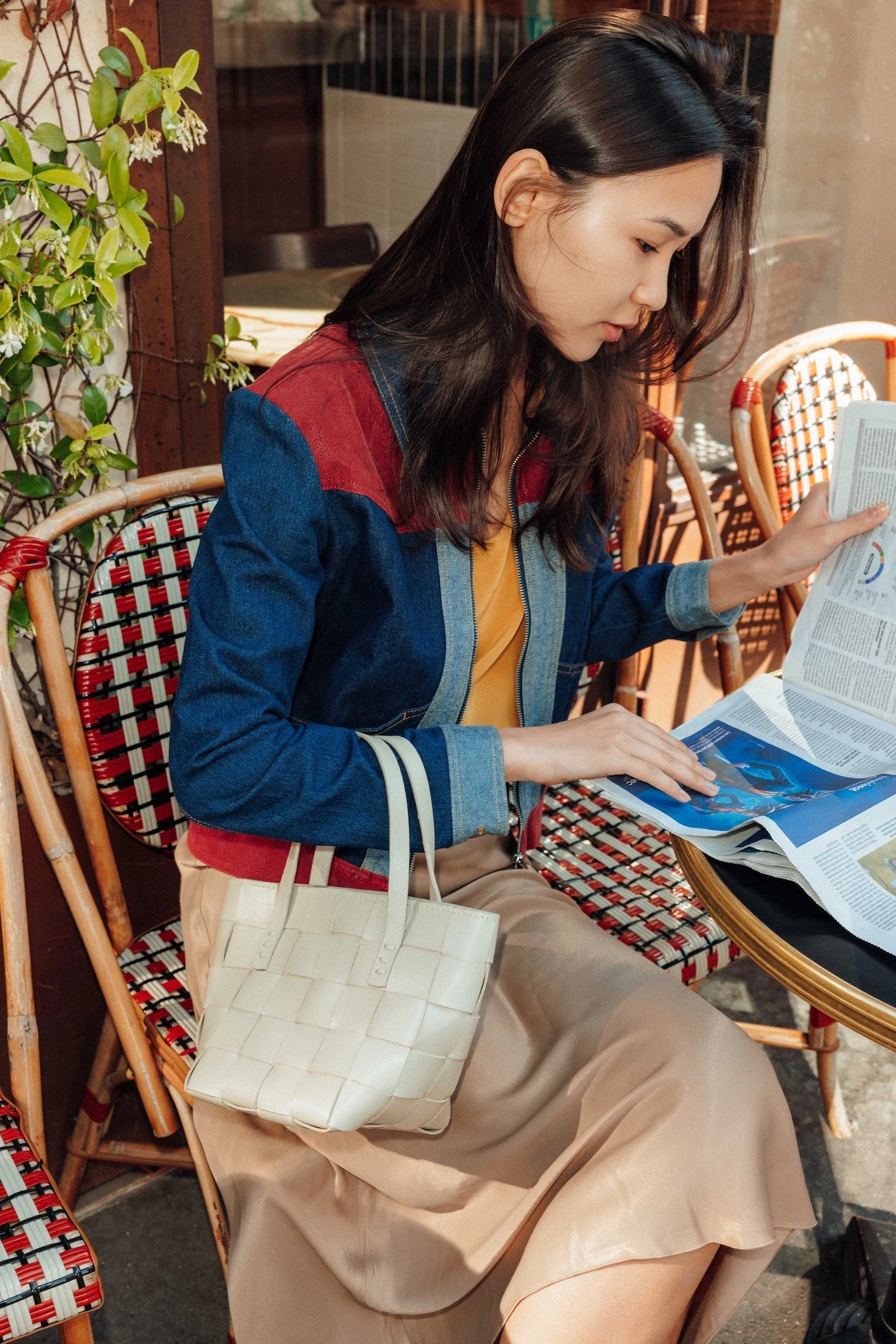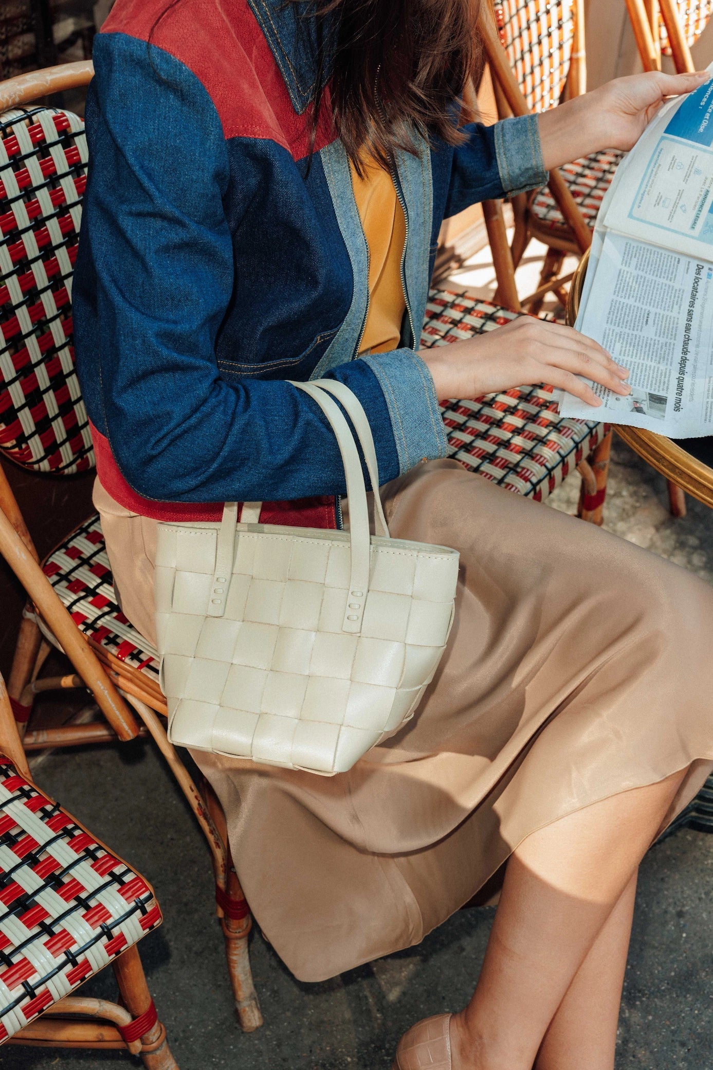 The "Japan Mini" is a compact rendition of the popular Japan Tote, maintaining the same high standards with its supple cow leather construction. This mini tote features a cross-woven design that showcases contemporary and artistic flair, making it an ideal choice for those who appreciate both style and functionality in a smaller package.