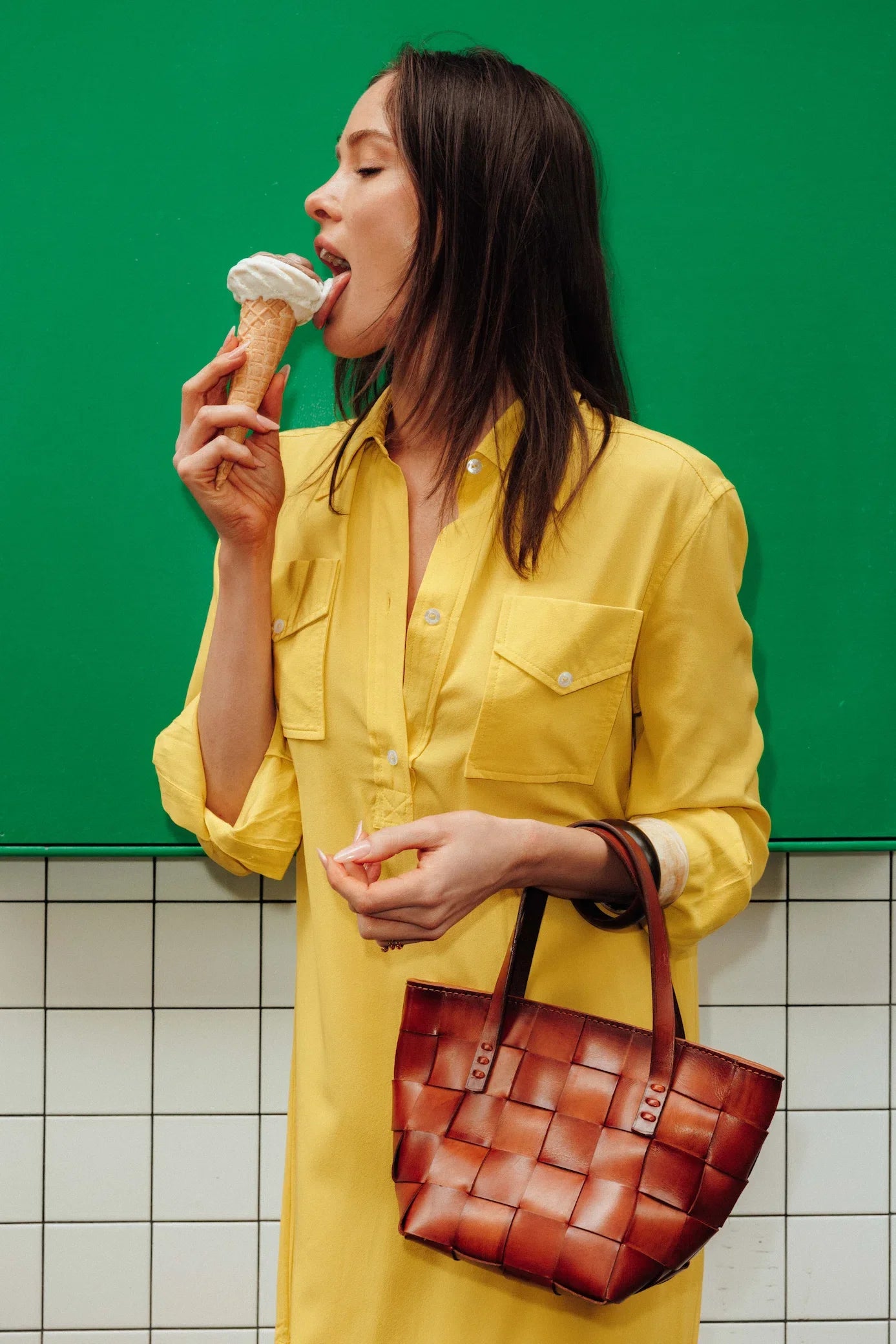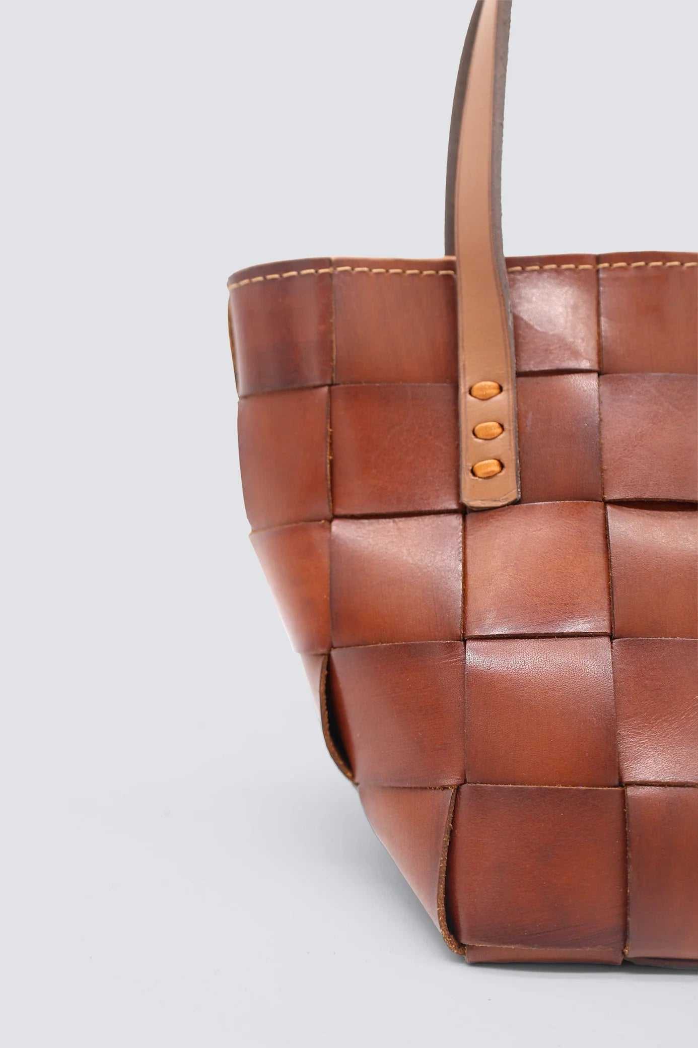 The "Japan Mini" is a compact rendition of the popular Japan Tote, maintaining the same high standards with its supple cow leather construction. This mini tote features a cross-woven design that showcases contemporary and artistic flair, making it an ideal choice for those who appreciate both style and functionality in a smaller package.