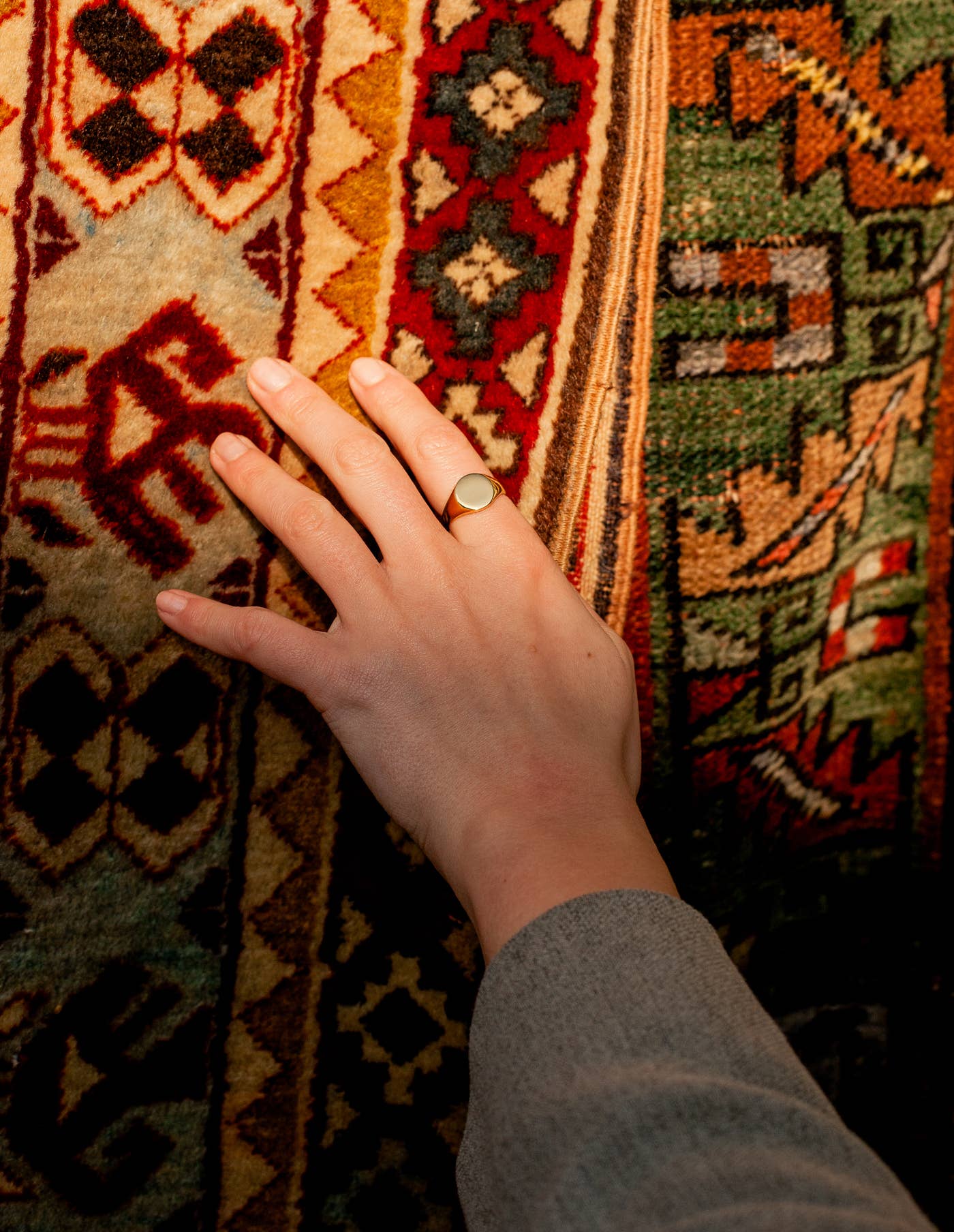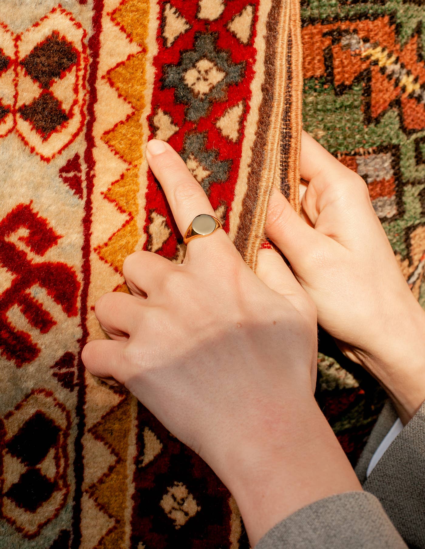 Nordic Muse - Gold Round Signet Ring, Waterproof