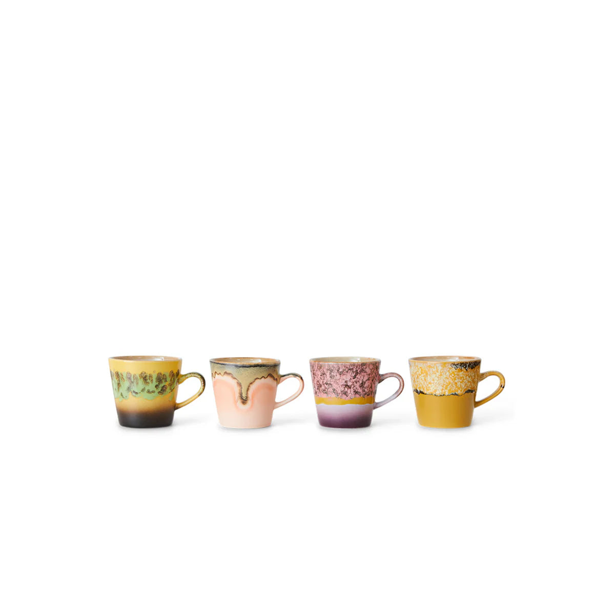 Have your Americano with added design edge with this set of four mugs from HKLIVING. Taking inspiration from the 70s and the natural coastline, the glazing has created four separate mugs of contrasting pattern and colourways that organically work beautifully together.