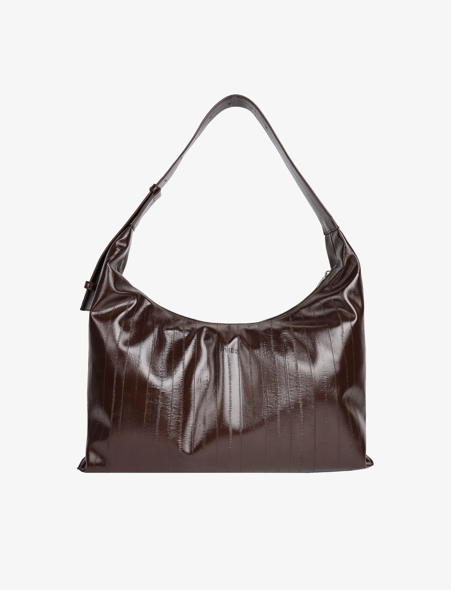 Shoulder bag with adjustable strap and zip closure. The bag contains one compartment with two inner pockets and one inner zip pocket.