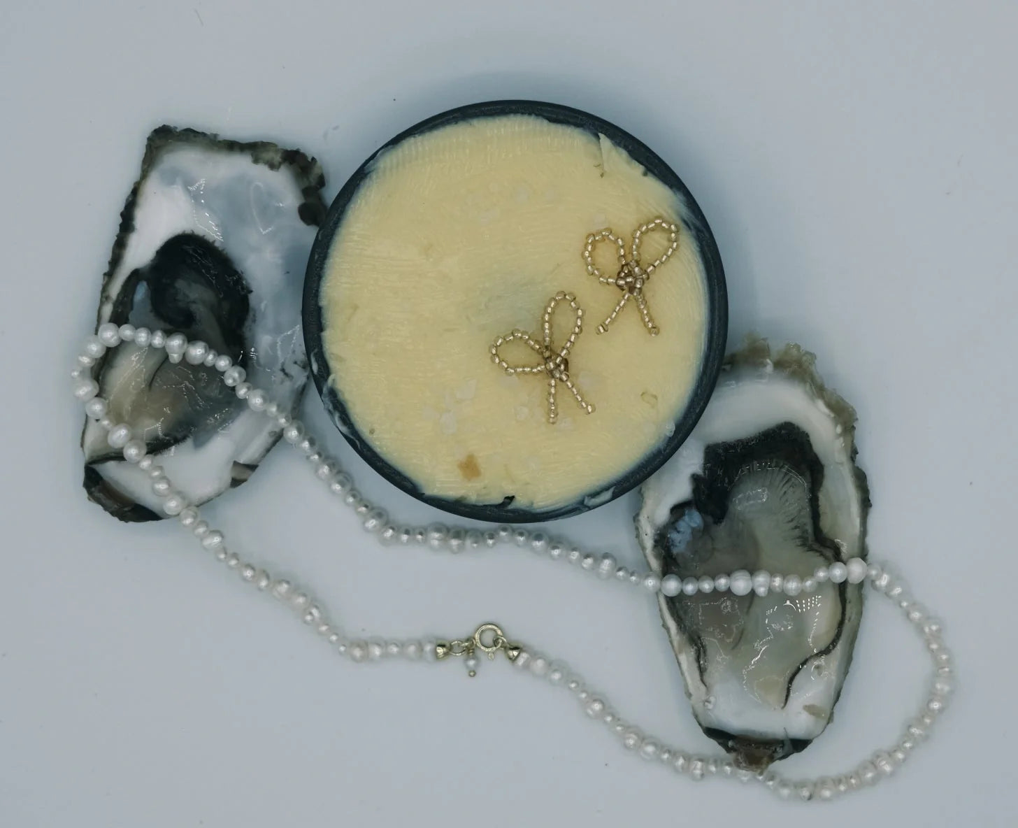 The Bow Earrings Piccolo are a delicate take on our Bow Collection. Hand-strung with shimmering gold glass beads and finished with 925 sterling silver earring pins, these handmade beaded earrings are designed for everyday elegance. Lightweight, timeless, and versatile, the Piccolo bows bring a subtle sparkle to any look. Perfect for gifting or styling as part of your handmade jewelry collection.