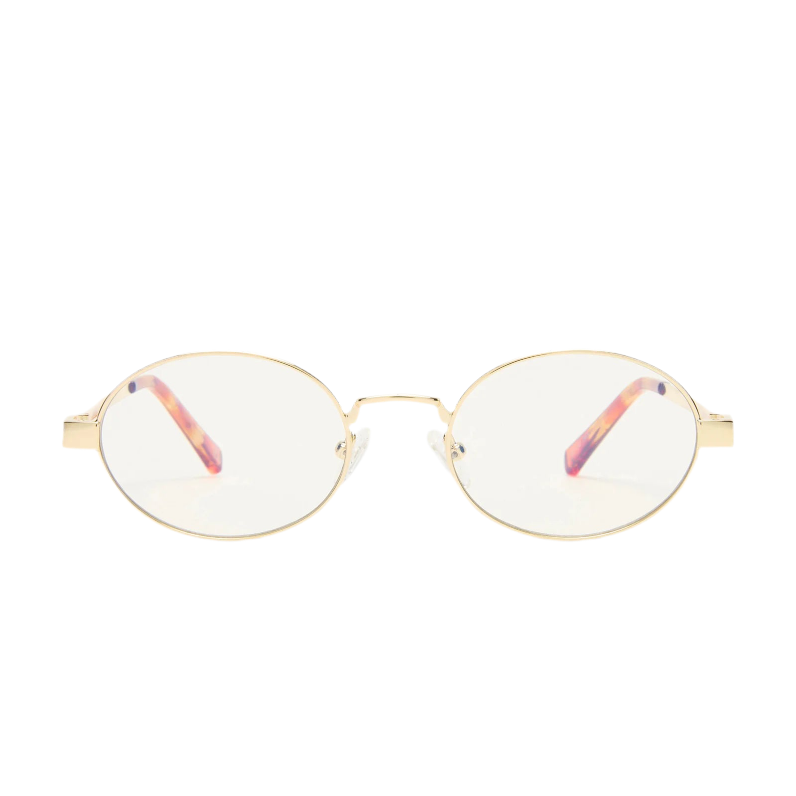 Defined by its refined oval profile, our POSEIDON DEUX blue light glasses are an ode to early ‘90s minimalism. Designed with three-dimensionally crafted metal flag stripe hardware on the temples, this flattering unisex style features adjustable nose pads for a bespoke fit.