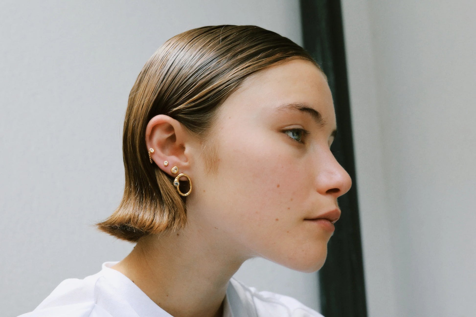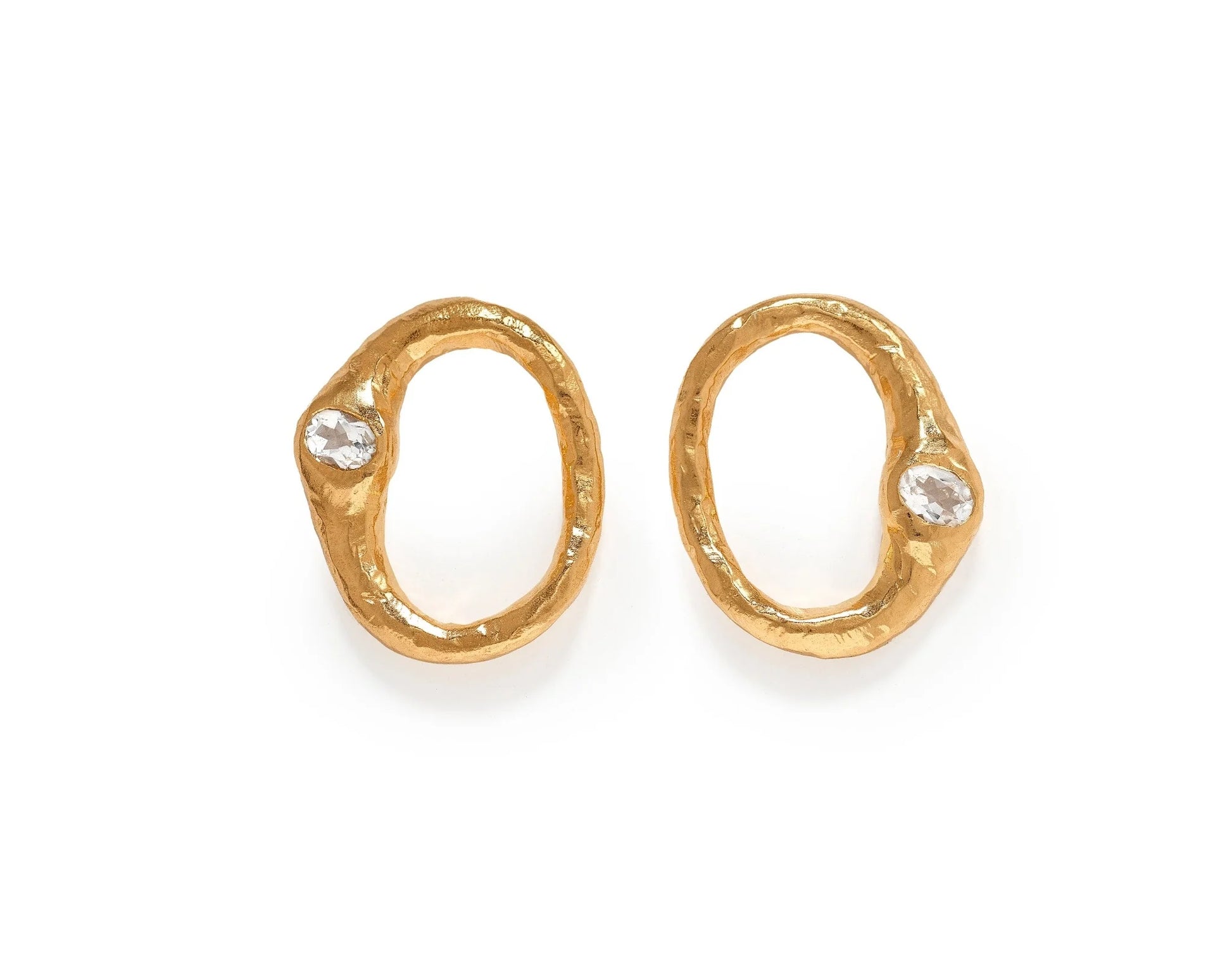 Beautifully unique flat mid-sized hoops with an organic shape, each set with a single white topaz.